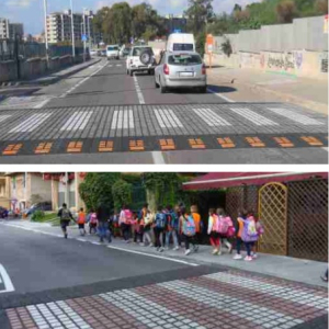 Attraversamenti Pedonali in Gomma Riciclata composti da Moduli Componibili Eco-sostenibili in Gomma Kubik e Blocchetti in Calcestruzzo