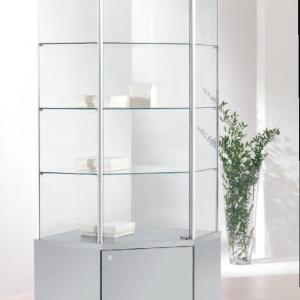 Vetrina in Cristallo Temperato con Ripiani Regolabili in Altezza - Angolare con Mobile - dimensioni (73X73X h183) Serie Alldes Made in Italy |