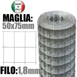 CONSEGNA 24/48 ORE LAVORATIVE -Rete in filo zincato elettrosaldata-Made in Italy- con maglie rettangolari 50X75mm- Filo Standard diametro: 1,80 mm(GARANTITO 100%) L'impiego è rivolto principalmente ai settori edili, industriali, agricolo e zootecnico. La sua caratteristica principale è il fatto che si presenta come rete economica in quanto la zincatura è esclusivamente sul filo e l'elettrosaldatura viene effettuata dopo la zincatura.