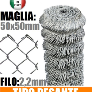 rete metallica Romboidale made in italy -Maglia: mm50x50 -filo 2,2mm(GARANTITO 100%)- a semplice torsione, conosciuta sul mercato anche con il nome di "Maglia sciolta" "Rete a rombi" "Rete griglia" data la sua realizzazione ad intreccio e non elettrosaldata. Caratteristica primaria è l’elevata flessibilità in fase di posa in opera, infatti l’impiego è particolarmente adatto per recintare aree caratterizzate da superfici irregolari tipo terreni agricoli con dislivelli.