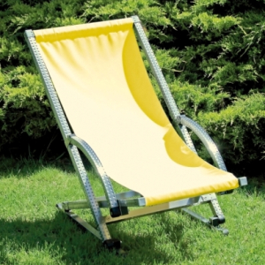 Resistente e maneggevole, la sdraio a dondolo dai braccioli curvati si presta per un arredo non convenzionale o per l’utilizzo outdoor.