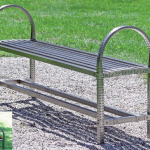 ----------------------------- Made from stainless steel, the items are perfectly suitable for the outdoor environment. The “bench-IVA” series is also available in a variation with wooden seating support bars 1265 mm | 425 mm | 755 mm |