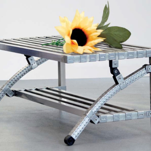 TAVOLO PORTA TV A SPICCHIO IN ACCIAIO INOX |