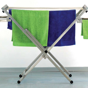 ----------------------- Foldable, space saving, drying clothing rack. This item is lightweight but extremly sturdy and has been designed to hold heavy garments. With two lateral supports for added space. The clothing lines are made from wire with a rubber covering and are adjustable to ensure perfect tension. CONSEGNA PREVISTA IN 15/20 GG |