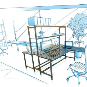 -------------------- An ideal solution for a swift reorganisation of the office environment. This ergonomically designed stainless steel desk, side runner and integrated book shelf create an optimal environment for a work station with a “touch of design” provided by the blue PVC top. CONSEGNA PREVISTA IN 15/20 GG |