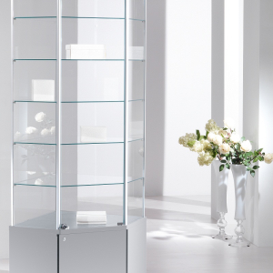 Vetrina in Cristallo Temperato con Ripiani Regolabili in Altezza - Angolare con Mobile - dimensioni(73X73X h220) Serie Alldes Made in Italy |