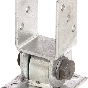 in acciaio grezzo con superficie zincata a fuoco a tassellare per pali in legno quadri . Il supporto porta palo nella parte superiore ha una forcella larga 71mm ed è ideale per il fissaggio di pali quadri da 70 mm. La forcella ha su ogni lato 3 fori di diametro 11 mm montati. Inoltre, la parte superiore del supporto può essere facilmente regolata per l'angolo desiderato. Per montare l'appoggio a terra, sulla base sono presenti 4 fori Ø 11mm. Disponibili per dimensioni 71x71 - 91x91 mm