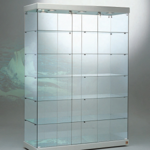 Le vetrine della collezione B&W costituiscono un salto di classe nell'arte espositiva. Il felice connubio tra il cristallo temperato e le nuovissime finiture in bianco, permettono l'arredamento ottimale di negozi, esposizioni, uffici, hotel, bar, mostre, nonchè l'inserimento in abitazioni private per riporre oggetti preziosi e da collezione. Non a caso B&W è una delle collezioni più prestigiose e raffinate, studiata per sfruttare al meglio lo spazio grazie alle varie dimensioni e ad una intelligente componibilità. Dotazione: