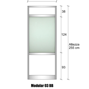 Modulo Parete Divisoria Struttura in Alluminio, Vetro Satinato e Bachelite con Due Traverse H2550xL1000 mm - ITALFROM® MODULAR03BB