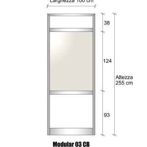 Modulo Parete Divisoria Struttura in Alluminio, Vetro Opale e Bachelite con Due Traverse H2550xL1000 mm - ITALFROM® MODULAR03CB