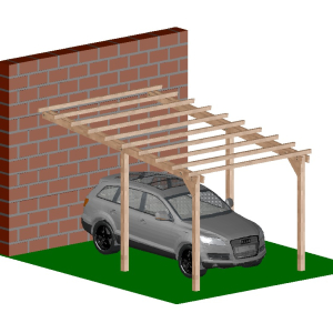 Carport Tettoia Addossata per Auto in Legno di Pino Impregnato - mt 5 X 3 - con Pali ad Interrare |