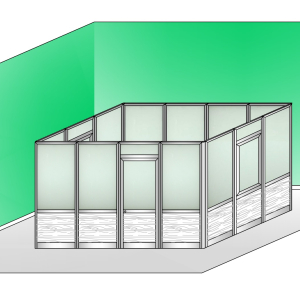 Box Modulare in Alluminio Composto da 11 Moduli in Vetro Satinato e Perline, due Moduli Finestra e un Modulo Porta in Vetro Satinato e Perlina 4 x 3 m H2550 mm - ITALFROM® BOX03SP