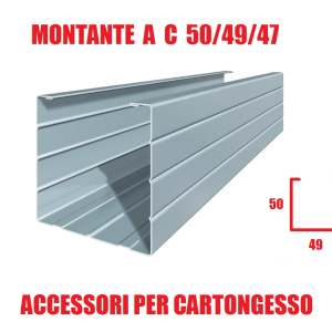 MONTANTE A C 50/49/47- PROFILO PER CARTONGESSO - Lunghezza Barra 300 cm -