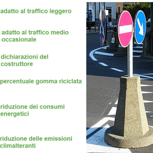 Il dissuasore ha una forma innovativa ed è ad elevata visibilità. Il prodotto presenta un foro centrale per il passaggio di un sostegno metallico e può essere corredato da golfari in acciaio zincato (optional).