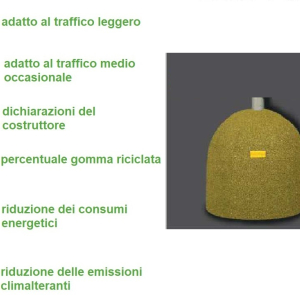 *scegli il colore dal menù a tendine sopra N.B. In fase di ordine indicare il coloreIl primo dissuasore di sosta realizzato in gomma riciclata dotato di foro centrale. Innovativo anche nelle tecniche di produzione. Composto da un'amalgama di granuli di gomma degli pneumatici fuori uso miscelata con materiale inerte di appesantimento e privo di struttura interna metallica. Il nuovo eco diffuasore non arrugginisce e non si scheggia. Inoltre, grazie alla struttura flessibile, non danneggia nemmeno le auto che lo urtano durante le manovre di parcheggio. Utilità |