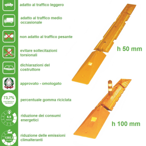 Cordolo Delimitatore di Corsia in Gomma Riciclata Gialla con Inserto Rifrangente Varie Altezze |