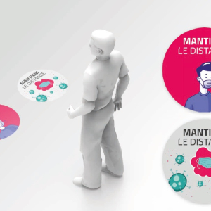 Tondi calpestabili adesivi f.to 40x40 cm con protezione antiscivolo, superficie sanificabile. A scelta due grafiche istituzionali in pronta consegna o personalizzabili con la vostra grafica. Tipologia Bolli/Distanziatori ![]() Impieghi Le bolli distanziatori sono la soluzione ideale per Aziende, Supermercati, Negozi, Farmacie, Studi Medici, Bar, ecc. per distanziare la propria clientelae fare prevenzione contro il diffondersi del Covid-19 . |