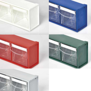 DIMENSIONI: H 240 mm X P 214 mm X L 600 Cassettiere componibili realizzate in resina termoplastica resistente agli urti, dotate di cassetti estraibili basculanti con maniglia ergonomica di forma arrotondata e porta etichette di grandi dimensioni integrato nel cassetto. Grazie alle guide presenti sulla parte posteriore dell’involucro portacassetti, tutte le cassettiere Multibox possono essere utilizzate anche a muro per mezzo di viti e su numerosi supporti metallici al fine di realizzare pareti attrezzate di diverse dimensioni. Le cassettiere sono disponibili in cinque differenti dimensioni |