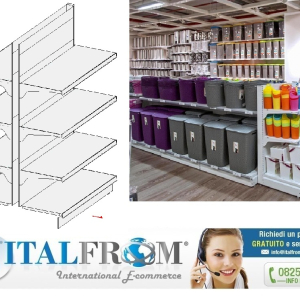 scaffalatura da esposizione componibile verniciata MODULO CONTINUATIVO scaffale a gondola Lunghezza 101 cm , H 166 cm , prof. 40 + 40 cm , con base + 3 ripiani ( regolabili in base alle vostre esigenze ) portaprezzo in Pvc in dotazione Dettaglio fornitura : - n° 1 montanti H cm. 166 con asolatura bifronte - n° 2 piano di base di cm. 101x40 - n° 6 piani con mensole regolabili in altezza di cm. 101x40 - n° 2 zoccolo di rifinitura frontale antipolvere - n° 1 coppia di piedi terminali (sinistro e destro) - n° 2 schiena liscia h 166 cm - portaprezzi per tutti i ripiani con colore a scelta VANTAGGI DEL PRODOTTO - SICUREZZA MADE IN ITALY - MERCE CERTIFICATA - SEMPLICITA' DI MONTAGGIO ( COMPLETAMENTE AD INCASTRO ) - COLORE SCAFFALE : BIANCO - COLORE PORTAPREZZO A SCELTA : TRASPARENTE,ROSSO,VERDE,BLU,GIALLO - ESTREMA VERSATILITA' - SI ADDICE A QUALSISASI SPAZIO ESPOSITIVO - POSSIBILITA' DI AMPLIARE A PIACERE LA STRUTTURA DESCRIZIONE PRODOTTO CERTIFICATO MADE IN ITALY Scaffalatura testata e sicura adatta ad arredare dal piccolo negozio al grade cento di distribuzione Versatilità ed eleganza egli accessori, finiture di qualità, concetti di design di interni innovativi, per creare un ambiente spettacolare che mettere in evidenza ogni articolo; materiali di qualità certificata, strutture resistenti nelle aree heavy duty e di stoccaggio materiali ingombranti; una vasta scelta di ripiani e fondali concepiti per le più diverse esigenze espositive: nessun dettaglio è lasciato al caso, per garantire sempre la massima affidabilità delle attrezzature e l'utilizzo migliore di qualunque area di vendita. ![]() ![]() ![]() Siamo a Vostra disposizione per preventivi personalizzati anche in 3D : ![]() |