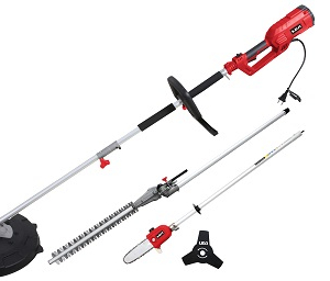 Motore: 230 V Potenza: 1200 W. Larghezza di taglio: Trimmer 350 mm Passo catena: 3/8 'P -91 Dotazioni di serie: Decespugliatore, Tagliabordi, Tagliasiepi a palo, Sega a palo Maniglia: Safe Delta Handle Diametro albero: albero diviso da 26 mm Lunghezza di taglio: tagliasiepi 410 mm Line feed: Bump Head