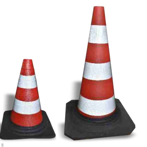 I coni stradali sono dei delimitatori di spazio di forma conica in gomma riciclata. I prodotti sono di colore rosso con strisce bianche rifrangenti, colori che li rendono particolarmente visibili a tutte le ore. Il cono è realizzato in gomma per garantire un’elevata elasticità dell’articolo. La parte conica è verniciata di rosso con vernici antinvecchiamento e, per rendere il cono visibile sia di giorno che di notte, viene applicata una pellicola rifrangente di classe II. La base, di colore nero, è dotata sia nella parte inferiore che superiore di piedini che facilitano l’impilazione dei coni e permettono il deflusso delle acque. Utilità |